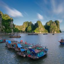 After finishing your breakfast and checking out of the hotel, you’ll head out on a comfortable drive to Halong Bay, about 200 kilometers from Hanoi. Once you arrive at the port, step aboard your cruise, where the friendly crew will greet you with a cool welcome drink. A delicious lunch will be served as the boat sails through towering limestone formations and emerald waters.
